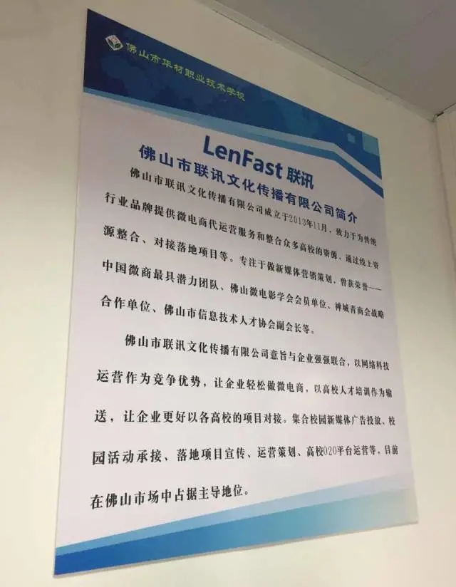 华材与联讯共同成立新媒体工作室,为社会培养实用型人才!佛山市华材职业技术学校与佛山市联讯文化传播有限公司共同成立了新媒体工作室。将公司的文化及技术带入了佛山华材职业技术学校,去培养在网络时代中的一批新传媒方面的人才。